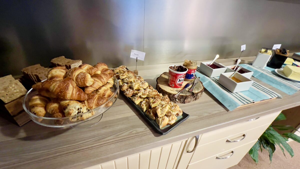 Outro ponto que me conquistou foi a farta oferta de salmão norueguês, algo que para mim é sempre um dos melhores momentos das manhãs na Noruega. Como sou apaixonada por salmão, aproveitei sem culpa — e confesso que esse é um daqueles cafés da manhã que você faz com calma, repetindo o prato enquanto aprecia a vista do fiorde.