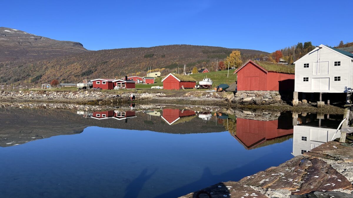 Esse pequeno vilarejo no Norte da Noruega não tem vida urbana vibrante — e é exatamente esse o ponto. Aqui você não vai encontrar ruas movimentadas, cafés descolados ou museus. O que existe é fiorde, montanha, céu escuro e uma sensação de isolamento que transforma a experiência no Ártico em algo muito mais íntimo.
