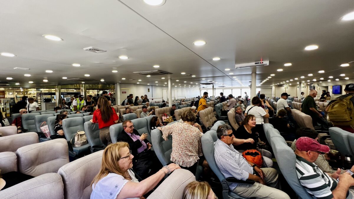 Ao chegar ao terminal, você encontrará uma estrutura semelhante à de um aeroporto, com balcões de check-in, despacho de bagagem, controle de imigração e uma área de embarque onde os passageiros aguardam a chamada para o barco.