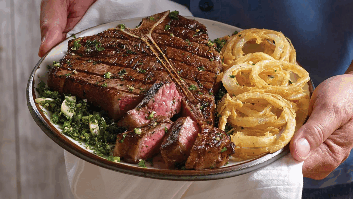 Se você quiser se presentear com um jantar mais formal, o bife Porterhouse é o corte clássico das churrascarias nova-iorquinas. É um corte enorme que inclui o contra-filé e o filé mignon.