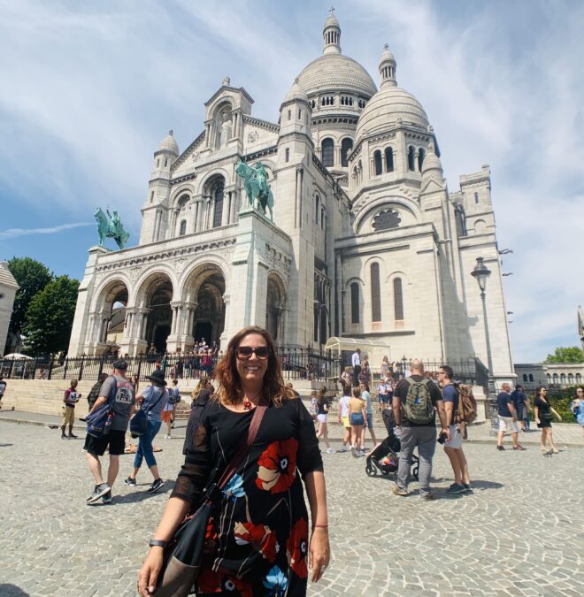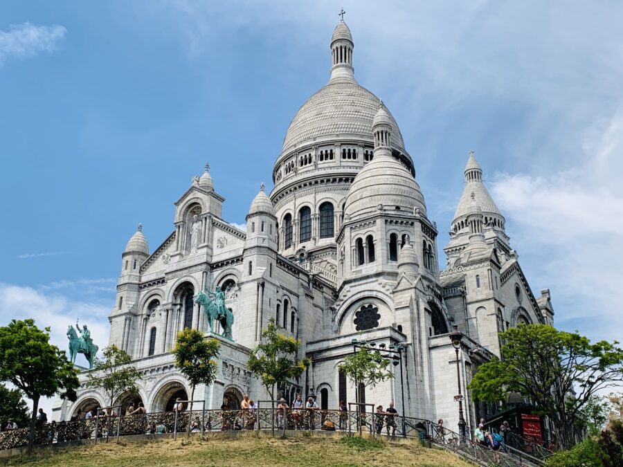 Entre os lugares que entram em qualquer lista de o que fazer em Paris viajando sozinha, a Basílica de Sacré-Coeur é um dos mais marcantes — não só pela arquitetura, mas pela localização no alto de Montmartre, que oferece uma das vistas mais abertas da cidade. Mesmo sendo extremamente turística, continua sendo um lugar que impressiona quando você chega sem pressa e consegue realmente observar Paris lá de cima.
